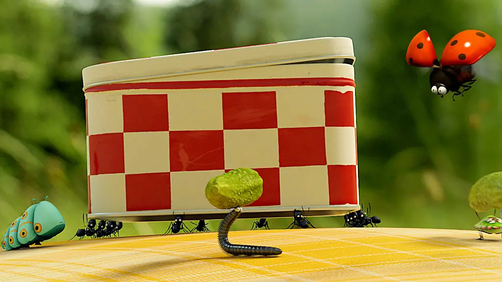 Der Held von "Die Winzlinge" ist ein kleiner Marienkäfer. Der hat zwar seine Familie verloren, findet aber schnell Freunde in einer Gruppe Ameisen. Mit denen transportiert er den süßen Schatz durchs Blätterdickicht.