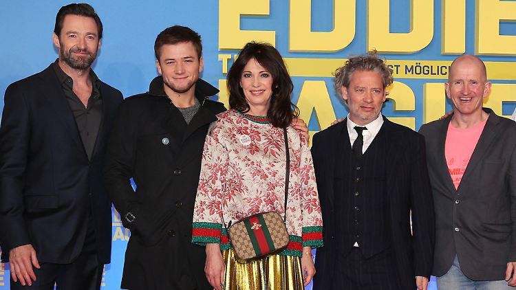 In einer ungewöhnlichen Nebenrolle: Iris Berben als flotte Skibar-Wirtin Petra. Wie Berben verriet, war sie tatsächlich aufgeregt, neben Frauenschwarm Jackman zu arbeiten: "Man ist ja eigentlich nicht mehr vorhanden, verschwindet quasi vollständig hinter Hugh Jackman, auch bei seinen eigenen Freunden", so die 65-Jährige, die im Film sowohl mit "Eddie" als auch mit dem "Trainer" ein bisschen flirten darf. "Natürlich hatte ich großen Respekt und bin schon auch mit einer gewissen Nervosität und Aufregung zum Dreh gegangen - so geht es mir aber auch bei anderen Kollegen, wenn ich sie beruflich respektiere. Meine Aufregung hat sich aber sofort gelegt, als ich am Set ankam. Sowohl Hugh Jackman als auch Taron Egerton haben mich im wahrsten Sinne des Wortes umarmt und damit sofort hineingezogen. Vom ersten Moment an waren wir auf Augenhöhe", schwärmt sie. "Da spielte es dann auch keine Rolle mehr, dass ich nur sieben Tage gedreht habe und quasi als kleiner Gast dort auftrat."