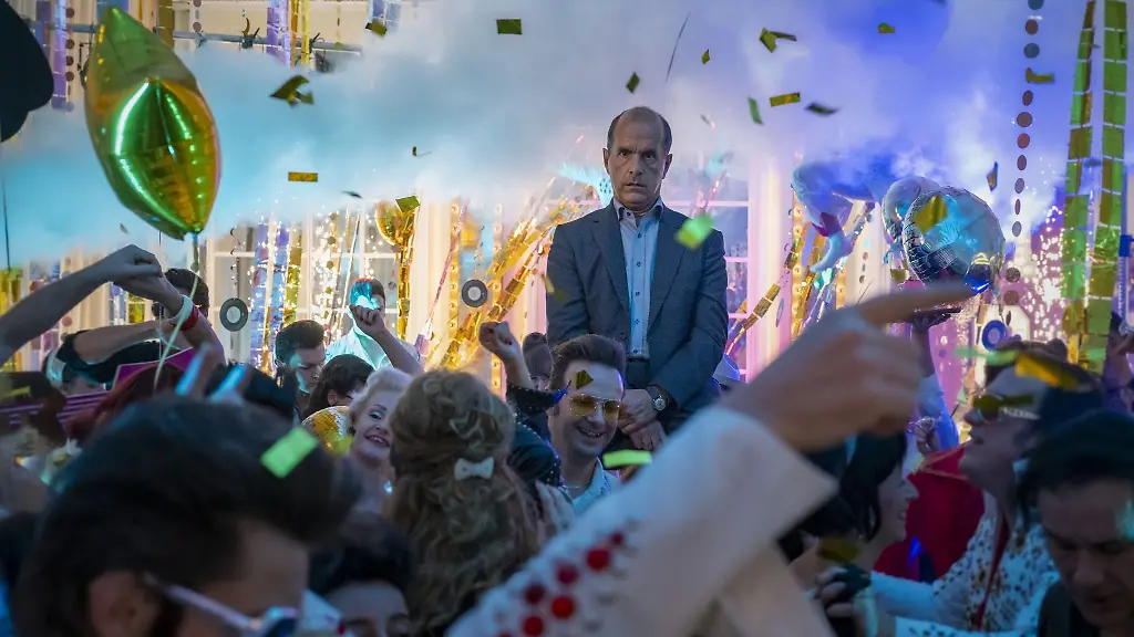 Dann: Auftritt Marc Hosemann. Er ist der Sänger (Hosemann singt herrlich lässig, witzig und kratzig), er ist Alleinunterhalter und er ist der Ansager des Abends. Dabei springt er nur für einen anderen ein, Bock hat er auf die gelackte Veranstaltung nicht. Aber Hosemann hatte Bock auf die Rolle: " Ich hab' extra Gesangsunterricht genommen. Jetzt nicht so im klassischen Sinne, aber um mich sicher zu fühlen, alle Töne zu treffen, im Takt zu bleiben. Ich hab' mich ganz schön abgerackert." Hosemann lacht, weil er weiß, dass es an einigen Stellen schief klingt, aber das soll so, und anderen Stellen, wenn er "Senza una donna" zum Besten gibt und in die höchsten Höhen muss, dann schafft er das auch. Zum Niederknien, man möchte ihn sofort für die nächste Hochzeit buchen!