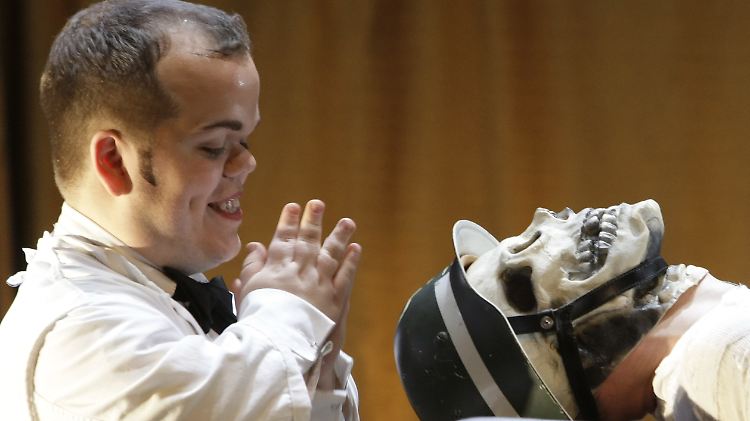 Jörg Buttgereit (r., als Teutonenmonster) und Michael Waechter bei Proben zum Stück "Captain Berlin versus Hitler" im November 2007.