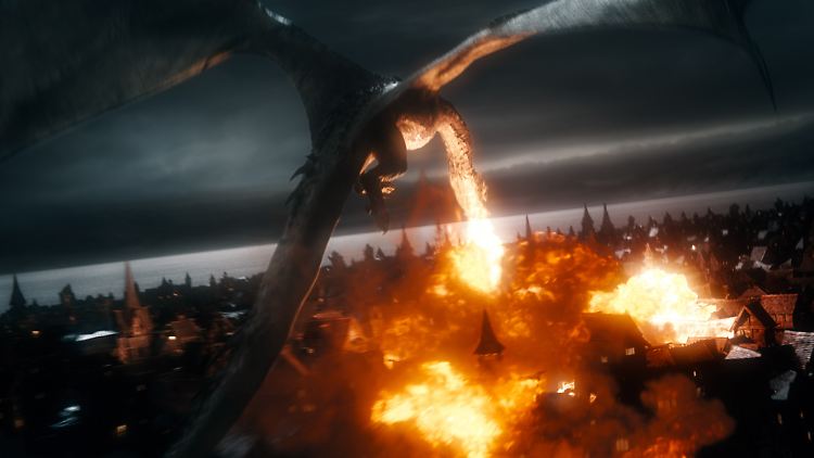 Rachedurstig: Smaug greift Seestadt an.