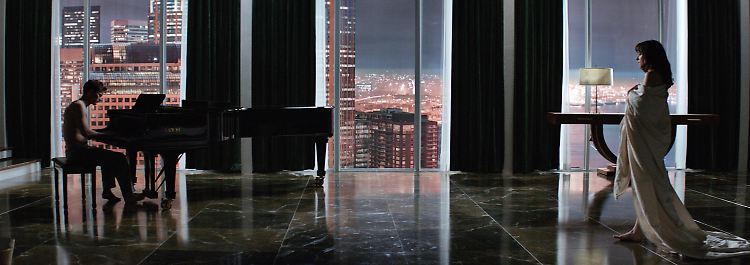 Gut, die Popoklatsche-Nummer ist irgendwie albern und auch über die Pferdegerte und die Handschellen wurden bereits so viele Witze gemacht, dass es sich ausgewitzelt haben müsste. Auch, dass das 21-jährige Fräulein Steele noch Jungfrau ist und total romantisch defloriert wird (obwohl er gar kein Romantiker ist!!), bevor es zur wirklichen Action kommt, ist nicht so recht glaubhaft. Aber was soll's? Das ist ein Märchen! Junge Frau lernt reichen, gutaussehenden Mann kennen, der sich vertraglich verpflichten möchte, nur ihr zu gehören. So weit, so gut, dann schenkt er ihr auch noch einen neuen Laptop, Auto, Klamotten, was man so braucht als Anfänger-Sexsklavin. Er hat obendrein eine 1a-Wohnung mit Spitzenausblick, fordert das Mädchen zum Einzug auf und fliegt mit dem eigenen Helikopter von Stadt zu Stadt. Er spielt nach dem Sex auf dem Flügel und wenn er gut drauf ist, dann nimmt er das Mädel gleich nochmal auf dem Klavierhocker.