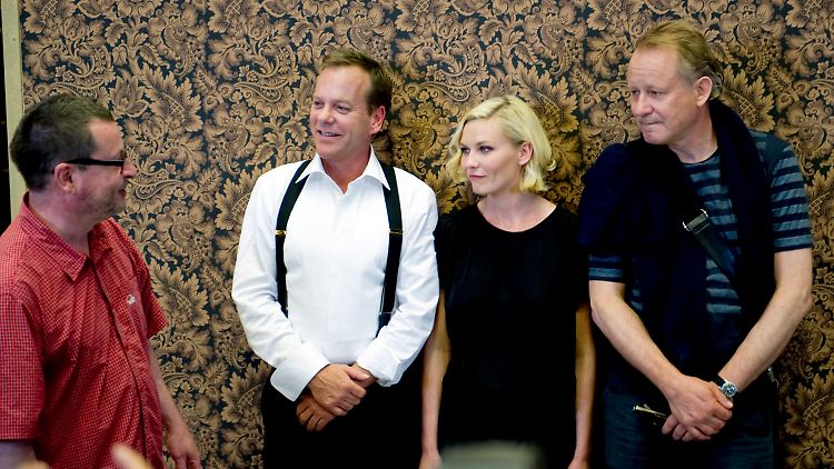 Lars von Trier, Kiefer Sutherland, Kirsten Dunst und Stellan Skarsgård beim Dreh von "Melancholia".