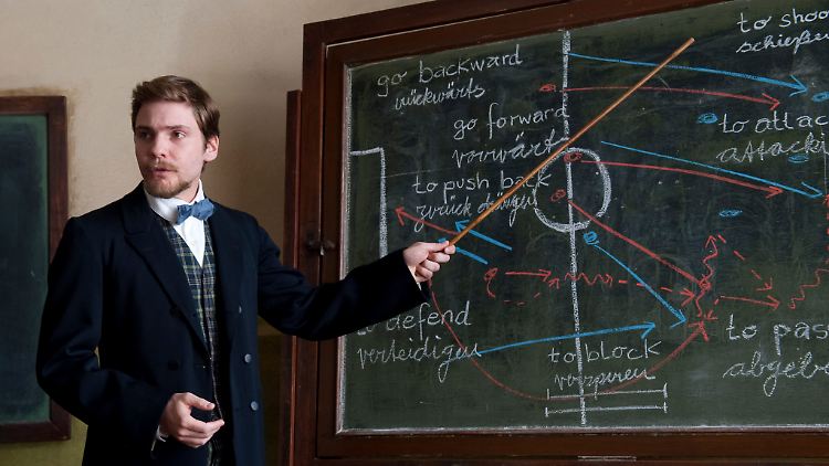 Und der kommt recht zügig zum Einsatz, denn alles was seine Schüler über England wissen, sind Vorurteile, eingedrillt mit den damals in den Schulen vorherrschenden deutschen Tugenden Disziplin und Gehorsam. Warum auch Englisch lernen, wenn man die Insel eh bald erobert und die Engländer dann Deutsch lernen müssen? Koch zitiert die Schüler in den Turnsaal. "This is a Foot-ball" - ein Satz den die Schüler nie wieder vergessen sollen. Sie schießen damit auf einen Barren, der als Tor fungiert. Symbolik pur, war Turnen doch damals die deutsche Sportart überhaupt, die perfekte Körperertüchtigung mit Drill und Kommandoton. Fußball dagegen, die "englische Krankheit", steht für die Entdeckung des freien Denkens, Individualität gepaart mit Teamgeist.