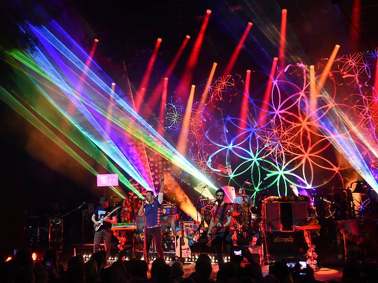 Das ist nur ein Beispiel für die riesige Marketing-Maschine, die Coldplay mittlerweile umgibt. 1996 von den vier Studienfreunden Chris Martin, Jonny Buckland, Will Champion und Guy Berryman gegründet, gehören Coldplay längst zu den größten Bands der Welt. Mehr als 80 Millionen Tonträger haben sie im Laufe ihrer Karriere verkauft. Die Tickets für ihre drei Stadionkonzerte in Deutschland im kommenden Sommer waren innerhalb von wenigen Tagen vergriffen. Doch als sie an diesem Abend nach langer Abstinenz wieder auf der Bühne stehen, überstrahlt die Musik schnell all den Kommerz.
