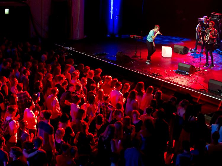 Rapper Drehmoment aus Saarlouis rappt mit Puppe. Die soll sagen, was er nicht kann. Was das ist? Eine Mischung aus Empörung, Bösartigkeit und gesunder Gleichültigkeit. Ein Ausblick auf den "Gebeutelte-Jugend"-Tenor, den noch etliche weitere Künstler anschlagen werden. Zum Beispiel Faakmarwin aus Bremen: "Wer nichts erreicht im Leben, kann immer noch feiern." Ist solche eine Einstellung zu Werbezwecken auch noch gesunde Gleichgültigkeit? Man verzeiht es den Jungs, denn ihr Song "Und du tanzt" treibt nicht nur das Publikum, sondern vor allem die Bandmitglieder wild hopsend über die Bühne. Und sie tanzen nicht nur, sie strahlen richtig. Der Knicklicht-Appell des Frontmanns wird schnell vergessen. Knicklichter können wirklich gerne auf dem "Tomorrowland" bleiben.