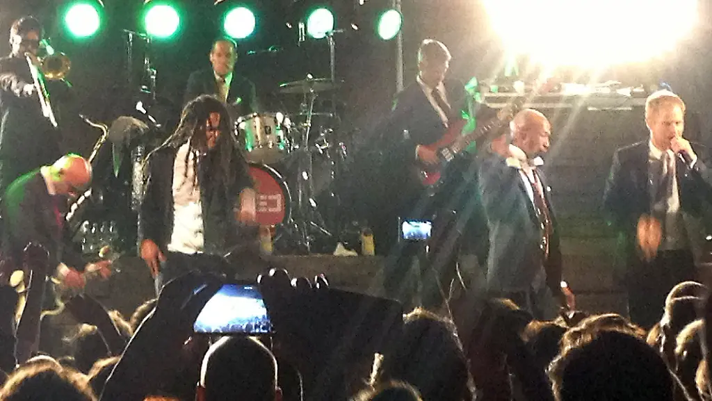 Das spontane Konzert auf relativ kleinem Raum, das Seeed dann am Abend ablieferten, ließ zunächst eigentlich eine abgespeckte Show vermuten. Doch auch auf der kleinen Bühne überzeugte die Dancehall-Reggae-Band musikalisch im großen Stil und holte alles raus, was eben ging. In etwa eineinhalb Stunden spielte die Gruppe mit sage und schreibe 13 Musikern auf der Empore neben Songs aus dem aktuellen und gleichnamigen Album auch Remix-Reggae-Kreationen ihrer älteren Hits. Zudem mischte sie ihrem Sound hier und da Elemente von Songs anderer Künstler bei - wie etwa Justin Timberlakes "Sexy Back" oder dem "Harlemshake".