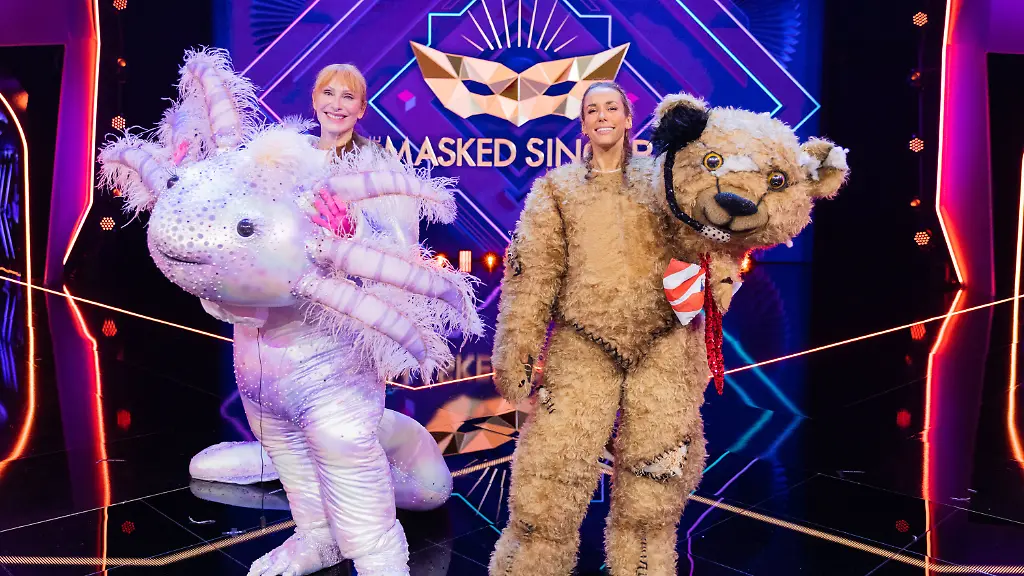 Der Bär tanzt nicht mehr - und der Lurch fällt durch: In der Musik-Rateshow "The Masked Singer" sind mit Schauspielerin Andrea Sawatzki ("Tatort") und Moderatorin Annemarie Carpendale ("taff") gleich zwei Prominente in einer Folge enttarnt worden. Sawatzki steckte im Kostüm eines schillernden Axolotls - auch bekannt als mexikanischer Schwanzlurch. Carpendale zwängte sich am Samstagabend aus einem Teddy-Kostüm. Beide erhielten im Halbfinale der Show zu wenige Stimmen der Zuschauer und mussten ihre Identität preisgeben.