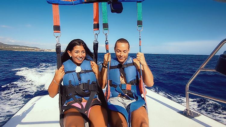 Jade, Eva und Vanessa haben zwölf Stunden später weit weniger an. Ein Strohhut, ein paar Sonnenbrillen und kunterbunte Shorts - mehr brauchen die Damen für ihre Parasailing-Tour mit dem Bachelor nicht. Eva darf nach narkotisierenden Small-Talk-Anekdoten in luftiger Höhe sogar noch weiter "ablegen". Im knallengen Bikini hüpft die Flugbegleiterin in den blubbernden Einzel-Date-Pool - sehr zur Freude von Bachelor Andrej, der irgendwann nicht mehr widerstehen kann. Abermals geht die Zunge des Rosenkavaliers auf Wanderschaft.
