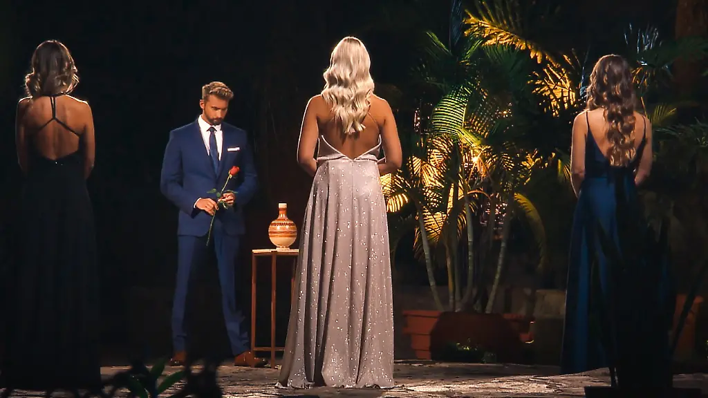 Nach vielen Gesprächen, noch mehr Küssen und der Erkenntnis, dass Mexiko auch aus der Luft "ein Traum" ist, zieht sich der Bachelor ein vorletztes Mal zum Nachdenken zurück. Nicht mal mehr die Spannung von Robin Hoods Flitzbogen kann mit der im Rosenquartier mithalten. Völlig überfordert, weicht der Bachelor jedem Blick der hoffenden und bangenden Ladys aus. Nur noch zwei Rosen in der Vase, aber drei Damen zur Auswahl. Der Bachelor verzweifelt: "Herz, Kopf, Bauch, alles zeigt gerade in eine andere Richtung", stottert Dominik.