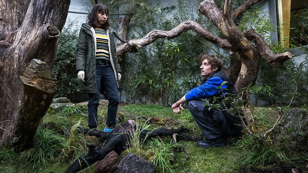 Doch es gibt natürlich jede Menge zu tun, was zunächst einmal das Publikum vorgeführt bekommt, während Ott und Grandjean noch verzweifelt nach einem roten Faden suchen. Da sind die Zwillingsschwestern Aileen und Nicole (in beiden Rollen großartig, in der einen länger als in der anderen: Sarah Viktoria Frick), der etwas zu gut gelaunte Tierpfleger Widmer (Tommi Zeuggin), Muskelmann Merz (Dardan Sadik) und die undurchsichtige Juwelierin Rosi Bodmer (Heidi Maria Glössner), die wiederum auch mit dem Zoo kollaboriert. Klingt vertrackt? Ist es mit Sicherheit auch.