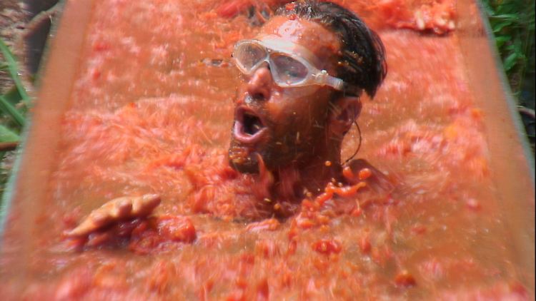 Während sich "die Betagten" wie Kinder im Buddelkasten zanken, bleiben der fokussierte Bibel-Prediger Yotta und seine Prüfungs-Trutschn Gisele "im Hier und Jetzt". Das Dreamteam wird in der "Spülhölle" willkommen geheißen, wo der Kampf um die Sterne in die nächste Runde geht. Mit den Köpfen und nur jeweils einer Hand stecken sie Guillotine ähnlich in einer Ekelrutsche fest, über die sich schwallmäßig jede Menge kotzreizfördernde Substanzen ergießen. Muss ziemlich schlimm riechen, das Kuh-EIERKULAT!