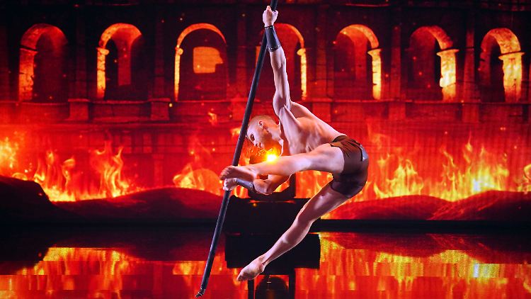 Als das Licht ausgeht, ist die Garderobe des Abends aber kein Thema mehr. Die Schwarzlicht-Tänzer der Gruppe "Blackouts" eröffnen die Show mit einem beeindruckenden Lichtspektakel. Da hält es auch einen Dieter Bohlen nicht auf seinem Sitz: "Meine Augen hatten Muskelkater. Das war richtig, richtig geil!", jubelt der Chefjuror. Der Anfang ist gemacht. Das Studio in Köln bebt. Und es kommt noch besser. Die beiden "Ramadami Brothers" präsentieren waghalsige Kopfstandkunst in Perfektion. Die Hip-Hop-Kids von "Mystery" feiern eine Groove-Party sondergleichen ("Ihr habt die Bühne abgerissen!" O-Ton Knossi). Und dann schwingt sich auch noch Flying-Pole-Champ Denys Zhygaltsov als römischer Gladiator durch die Lüfte - spätestens jetzt halten im Studio alle den Atem an.