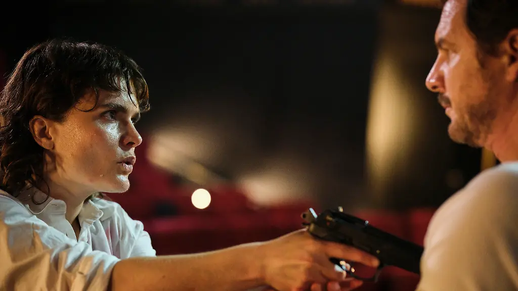 Doch das erste Gläschen Sekt ist gerade mal inhaliert, der Film angelaufen, da kommt alles ganz anders. Das Licht im Saal geht an, Schüsse fallen, das Kinopublikum wird kollektives Opfer einer Geiselnahme. Karin Urbanski (Anna Schimrigk) und Steffen Nippert
