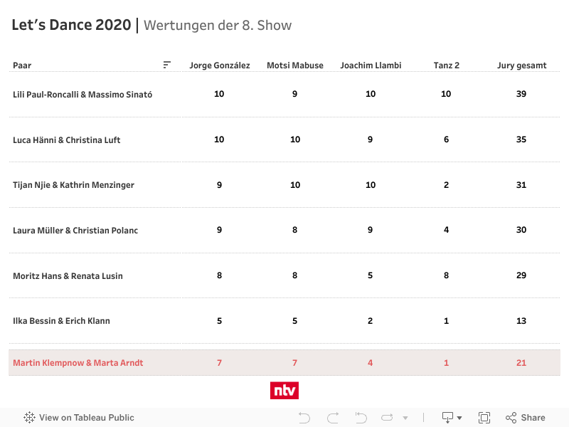 Woche für Woche kommt sie eine Runde weiter. Das sorgt bei vielen Zuschauern inzwischen für Unverständnis. Denn wenn Ilka weiterkommt, die oft auf dem letzten Platz ist und auch in der achten Live-Show einen Charleston nur sehr, sehr mäßig vertanzt, muss jemand anderes gehen. Loiza Lamers traf es in Show 7, diese Woche hat es Martin Klempnow erwischt. Und der hat - im Vergleich zu Ilka - eine tolle Entwicklung hingelegt.