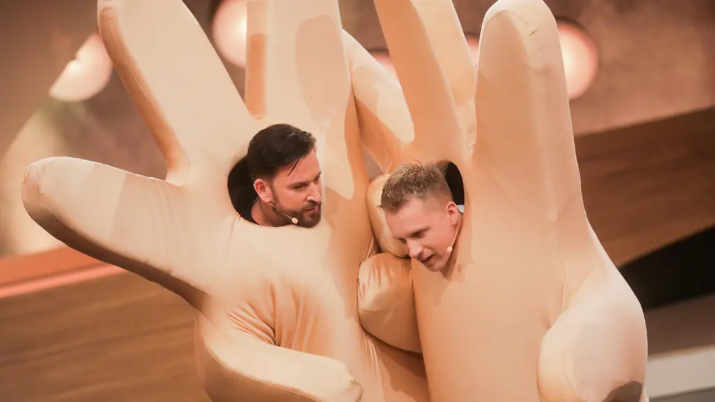 In neun Spielen plus Finale werden sich die beiden Erzfeinde duellieren und das sieht, zumindest zu Beginn, gar nicht mal so schlecht für den "Sie liebt den DJ"-Sänger aus, dem man in jeder Sequenz ansieht, wie unwohl er sich fühlt. Das aber lässt den sonst so von sich überzeugt wirkenden Macho-Michael menschlich und sympathisch wirken. So klettern die beiden Insta-Widersacher in riesige Karnevalshände und erraten Wendler-Songs. Runde eins geht knapp an "Micha". In den kommenden Runden sind die besseren Hälften mit von der Partie, etwa, wenn es darum geht, Kissen von der einen auf die andere Seite zu werfen oder aber bei dem Spiel: "Mein Typ kann's besser", bei dem Amira beispielsweise schätzt, wie viele in einem Kühlschrank befindlichen Dinge Olli sich in 60 Sekunden merkt (10) oder Laura, wie viele Wäscheklammern sich ihr "Beeeebbi" in der gleichen Zeit in die Visage klemmen kann (25).