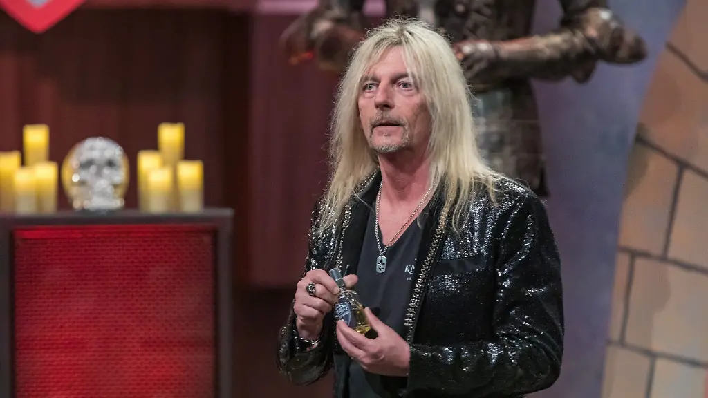 Bleibt noch der vielleicht skurrilste, aber definitiv lauteste Pitch der elften Staffel. Hierfür hat sich ein gewisser Axel Rudi Pell in der Löwenhöhle angekündigt, seines Zeichens Ruhrpott-Rock'n'Roll-Saitenhexer und "Wacken"-Dauergast. Der Rocker mit der platinblonden Mähne hat nicht nur ein paar satte Hardrock-Powerchords, sondern auch fünf gut riechende hölzerne Schatzkisten mitgebracht. In den Kisten befindet sich der selbstkreierte Duft von fünf verschiedenen Parfums, die unter dem rockigen "Knights Fragrances"-Banner nicht nur in der Metal-Szene für Furore sorgen sollen.