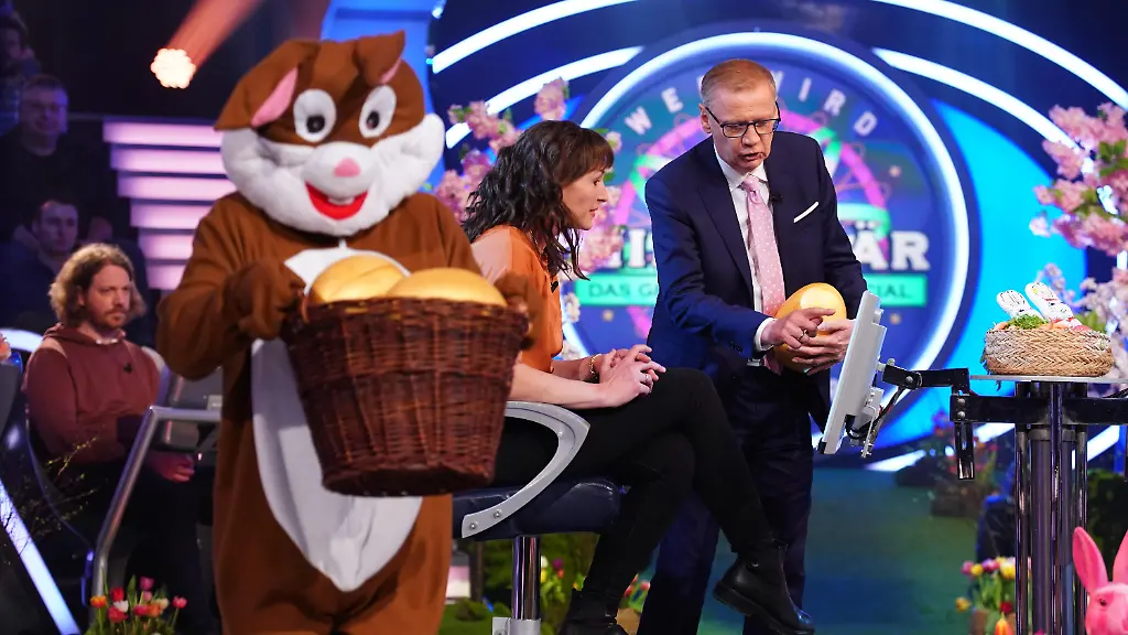 Womöglich hatte der pflichtbewusst durchs Studio hoppelnde Osterhase irgendetwas bei "Wer wird Millionär?" durcheinandergebracht. Jedenfalls setzte bei Jauch plötzlich das Mikrofon aus. Dann fiel auch noch sein Ersatzgerät aus. "Man will mich hier nicht mehr haben!", scherzte der Moderator, ehe ein Techniker ihm wieder Gehör verschaffte. Als Zusatzjoker konnte im Publikum eine Sportstudentin ("wie Cédric!") Hertlers Vermutung bestätigen, dass mit den sogenannten Pricken Wegmarken im Wattenmeer gemeint sind.