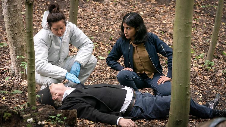 Verzweifelt an Boerne (Jan Josef Liefers, l.) und Thiel (Axel Prahl): Kommissarin Kröger (Banafshe Hourmazdi).