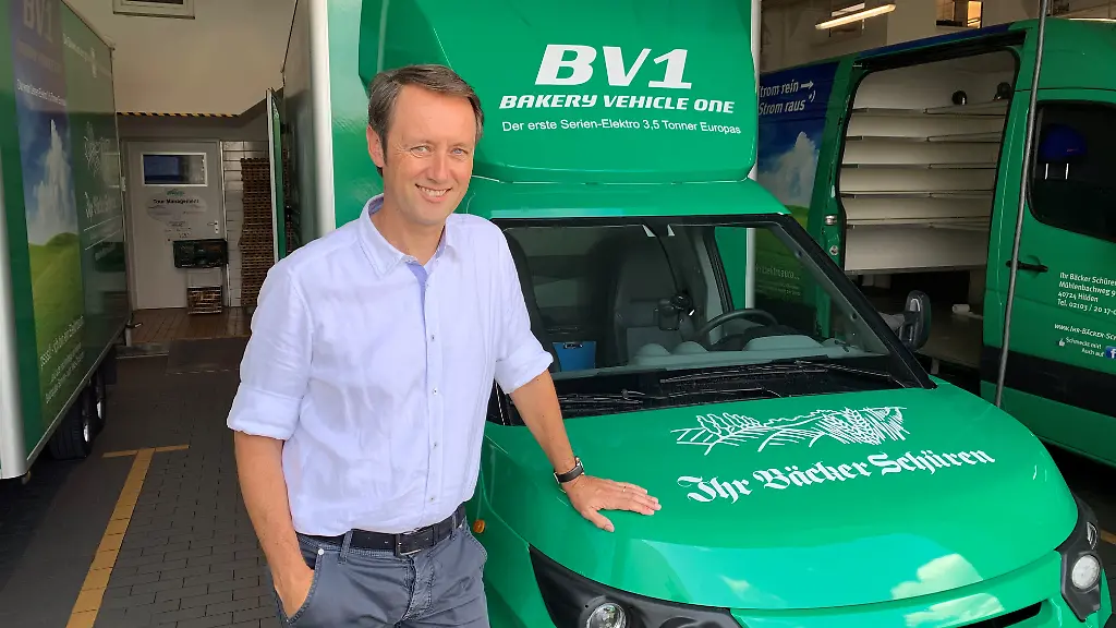 Unter anderem mit der Hilfe der Post-Tochter Streetscooter klappte es dann aber doch. "Da muss erst die Post kommen", lacht der stolze Besitzer des BV1. Das Bakery Vehicle 1 ist der erste 3,5 Tonnen schwere, alltagstaugliche Elektrolieferwagen für Backwaren.