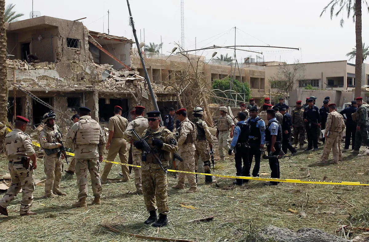 Das Auswärtige Amt in Berlin teilt mit, bei dem Anschlag in unmittelbarer Nähe der deutschen Botschaft seien eine irakische Sicherheitskraft der Botschaft getötet und drei weitere irakische Sicherheitskräfte verletzt worden.Bild 7 von 14 | Foto: AP