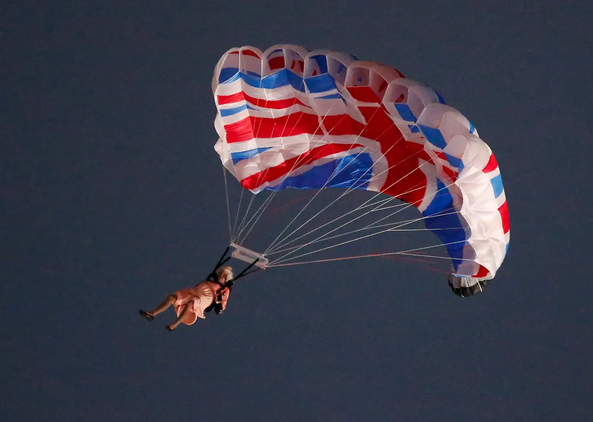 Mit einer imposanten Feier voller Höhepunkte und dem Entzünden des olympischen Feuers beginnen in London die Olympischen Spiele 2012. Und die Briten zeigen der Welt, wie es sich stilvoll feiern lässt. Sogar die Queen übernimmt eine kleine Rolle - als Bond-Girl stürzt sie sich todesmutig aus dem Helikopter. Oder?