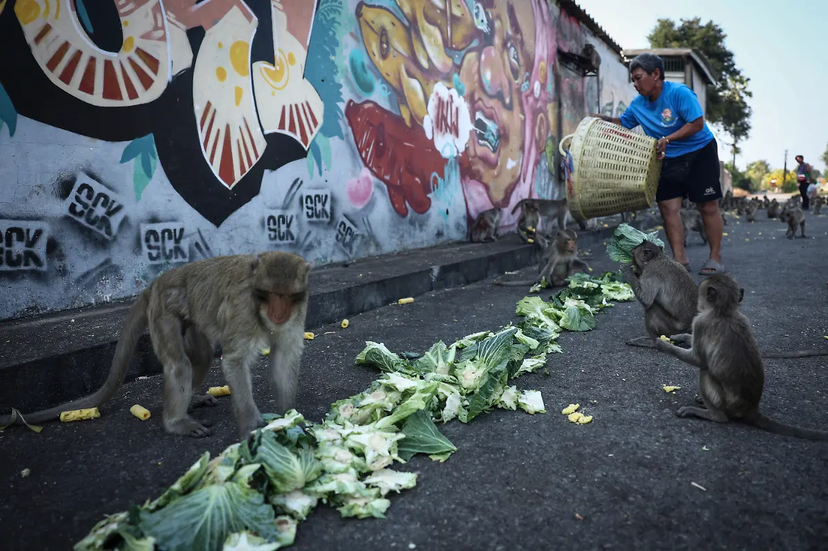 3000 Langschwanzmakaken lebten in der thailändischen Stadt Lopburi. In den letzten vier Jahren sind sie immer angriffslustiger geworden und plünderten sich durch die Straßen und Gebäude. Deswegen ergreifen die Behörden seit einigen Monaten Maßnahmen, um die Zahl der Affen zu dezimieren.