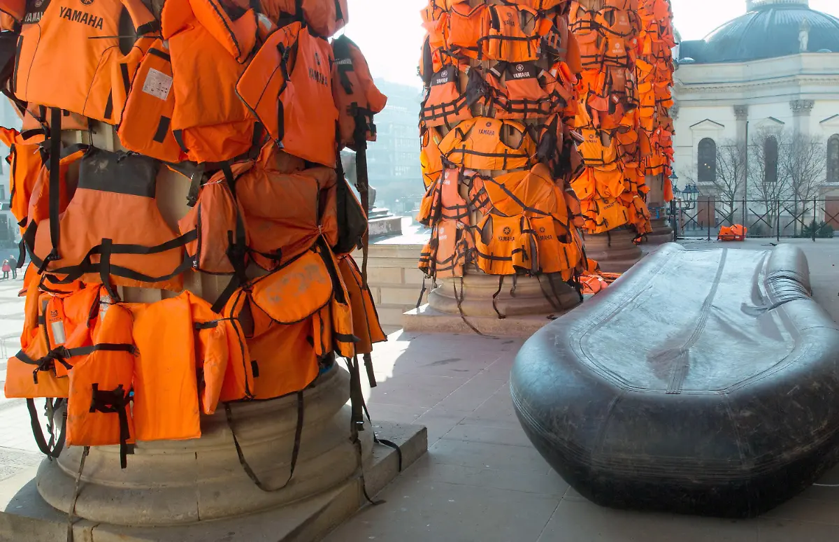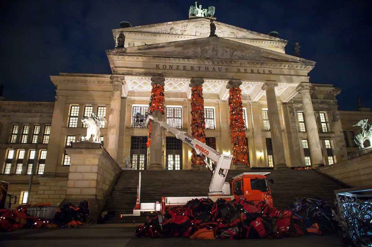 Ein Mahnmal für MenschlichkeitAi Weiwei verpackt Konzerthaus in Schwimmwesten