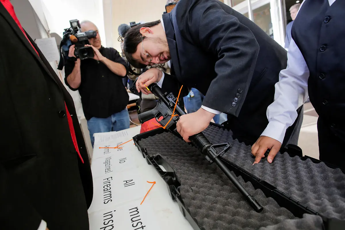 Mit dem Sturmgewehr AR-15 tötete der 19-jährige Nikolas Cruz zuletzt 17 Menschen. Doch für eine Gemeinde im US-Bundesstaat Pennsylvania ist diese Waffe "der eiserne Stab" aus der Bibel. Und sie feiern sie in einer Messe.