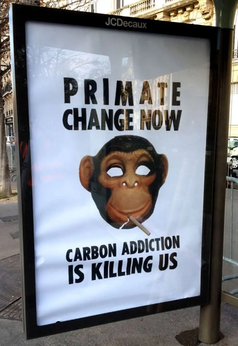 Eine Guerilla-Art-Gruppe schmuggelt in Paris Botschaften auf ganz normale Werbeflächen und entlarvt die Klimakonferenz als große Heuchelei. Denn diese wird unter anderem von der Fluggesellschaft Air France gesponsert. "Den Klimawandel angehen? Natürlich nicht. Wir sind eine Fluggesellschaft", steht auf einem Air-France-Plakat. Auch VW bekommt sein Fett weg.