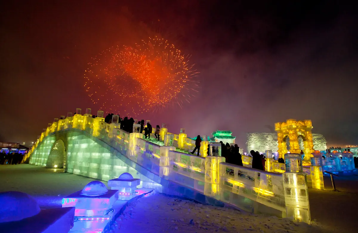 Jedes Jahr im Winter findet im chinesischen Harbin das Eis- und Schnee-Festival statt, bei dem aus Tonnen von Schnee und Eis riesige Skulpturen entstehen. Nachts werden diese auch noch farbig beleuchtet - das kann man kitschig finden oder zauberhaft. Auf jeden Fall zieht das Festival jährlich Hunderttausende Touristen an.