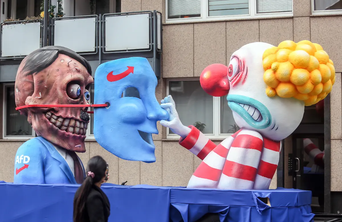 Rosenmontagsumzüge am RheinPutin beim Sex und Trump als Nazi ziehen durch Konfettiregen