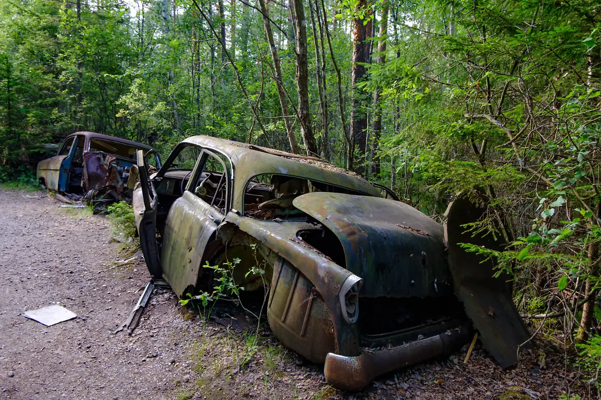 Schwedens Wälder sind für ihre Blaubeeren berühmt, für die gigantischen Mückenschwärme oder die Möglichkeit, Elchen zu begegnen. In Småland gibt es das alles auch, außerdem ist der Wald in der Nähe von Ryd aber voller Autowracks. Mehr als 150 sollen es sein und ihre letzte Ruhestätte hat eine besondere Geschichte.
