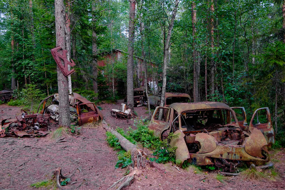 Mitten im WaldSchwedens faszinierender Autofriedhof Kyrkö Mosse