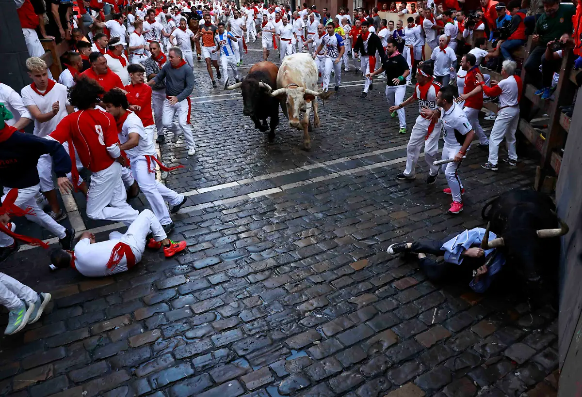 Blutige, umstrittene StierhatzPamplona jagt wieder Bullen durch enge Gassen