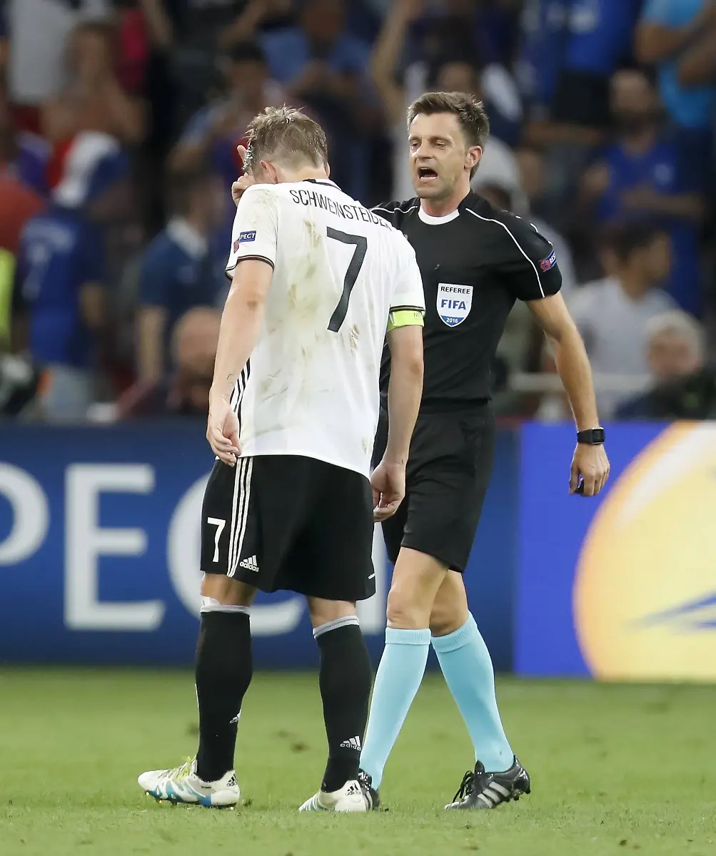 Die Fußball-Europameisterschaft geht ohne den Weltmeister in ihr großes Finale. An der vorletzten Hürde kommt Deutschland gegen Gastgeber Frankreich ins Straucheln und stolpert äußerst kurios und tragisch: über Pech, Unvermögen, Slapstick - und das nächste bizarre Handspiel.