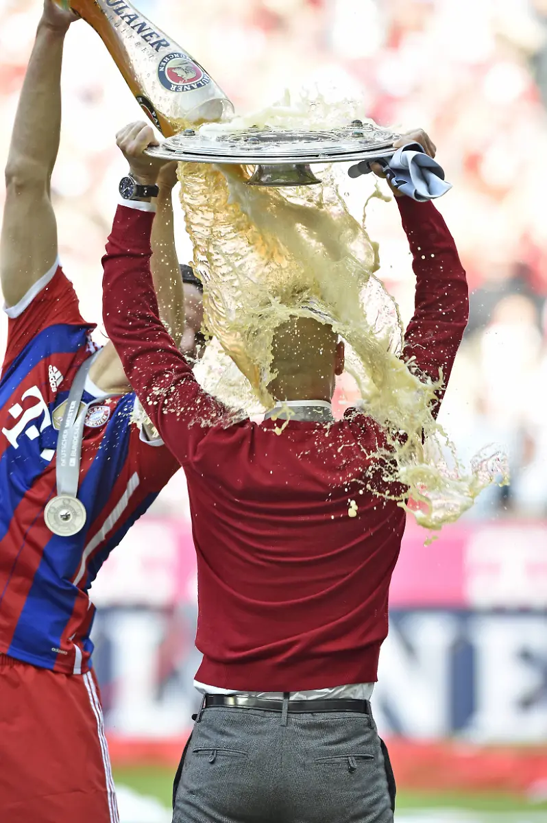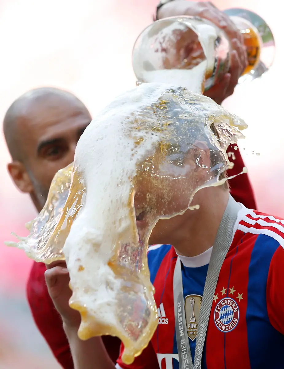 Bierduschen und KonfettiregenDer FC Bayern feiert seinen Titel