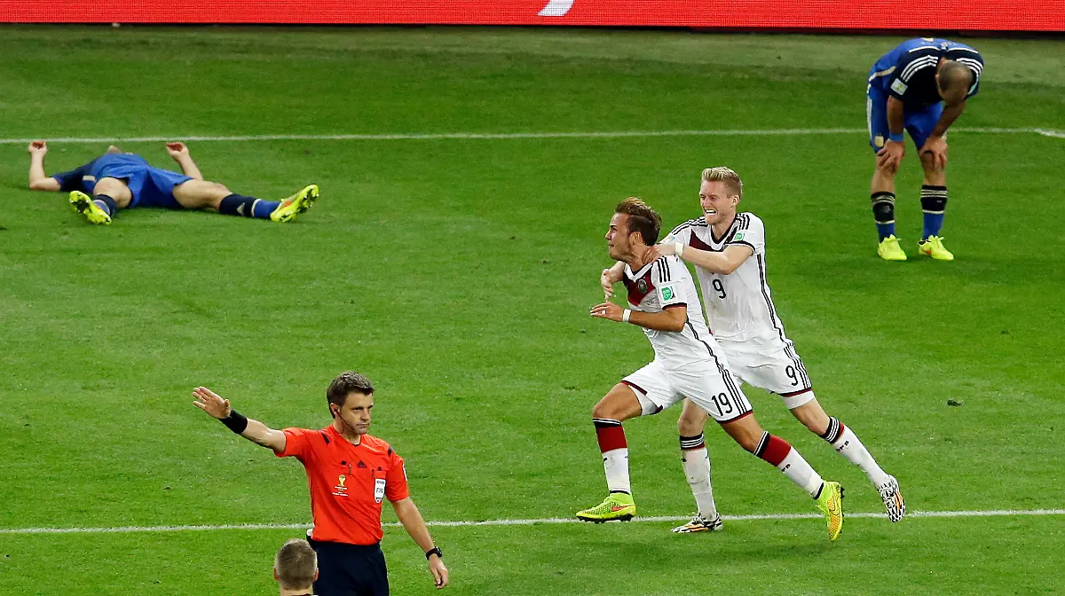 Alle vier Jahre findet das wichtigste Spiel im Fußball statt: das Finale der Weltmeisterschaft. In Brasilien liefern sich Deutschland und Argentinien einen epochalen Kampf über 120 Minuten. Mit Willen, Einsatz und am Ende technischer Finesse holt die DFB-Elf den Titel.