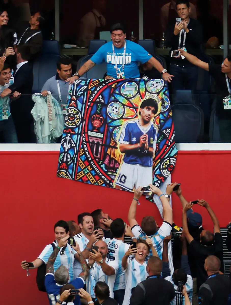Mit Ach und Krach schafft der zweimalige Fußball-Weltmeister Argentinien den Einzug ins WM-Achtelfinale. Doch nicht die Mannschaft sorgt für Schlagzeilen, sondern die ehemalige Ikone Diego Maradona, die auf der Tribüne sitzt.