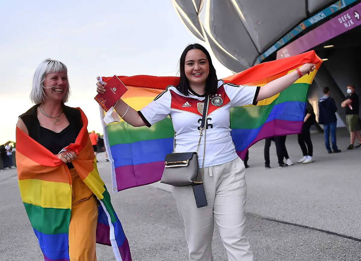 Mit dieser Welle der Solidarität hat wohl kein Verantwortlicher bei der UEFA gerechnet: Weil es am Münchner Stadion keine regenbogenfarbene Beleuchtung geben darf, schwenken Fans kleine Fähnchen, leuchten andere Spielstätten bunt, stürmt ein Flitzer aufs Feld. Ein Zeichen, das es bei der EM so noch nicht gab.