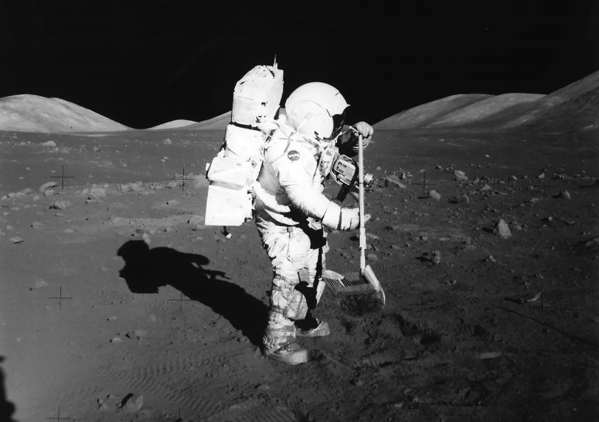 Ein 80 Kilogramm schwerer Astronaut wiegt auf dem Erdtrabanten nur rund 13 Kilogramm (im Bild Harrison Schmitt, der 1972 als letzter Mensch den Mond betrat).Bild 2 von 7 | Foto: picture-alliance / dpa/dpaweb
