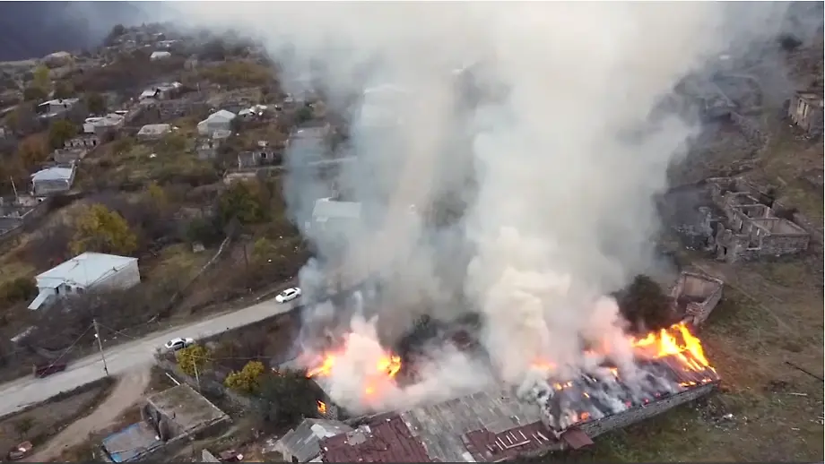 "Wir haben keine Heimat mehr"Armenier zünden in Bergkarabach ihre Häuser an