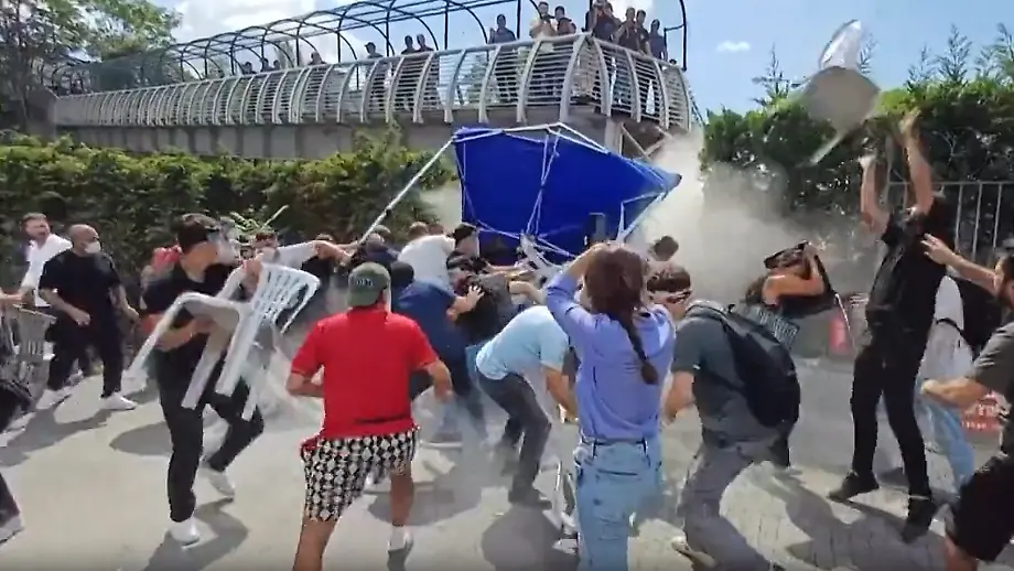 13.09.2025, 08:36 UhrDie türkische Polizei stürmt in Istanbul das Hauptquartier der CHP, der größten Oppositionspartei des Landes. Gegen die zahlreichen Demonstranten vor Ort setzen die Einsatzkräfte Schlagstock und Pfefferspray ein. Es ist nur die jüngste Eskalation in einer Reihe von Maßnahmen gegen die Partei.