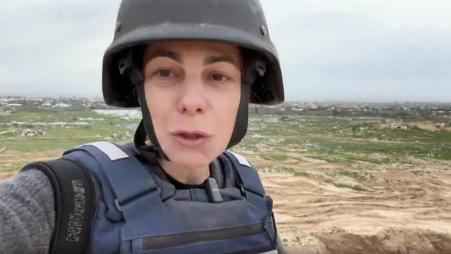 24.01.2026, 09:35 Uhrntv-Nahost-Korrespondetin Raschel Blufarb reist gemeinsam mit ausländischen Journalisten in Begleitung der israelischen Armee in den Gazastreifen. Frei berichten darf sie von dort jedoch nicht - sie darf nur zeigen, was die Armee erlaubt.