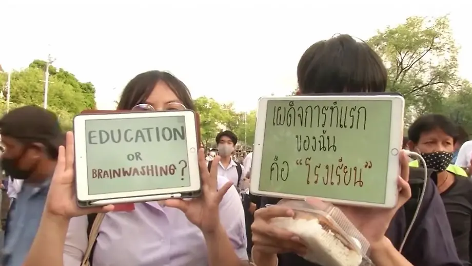 31.08.2020, 17:47 UhrSeit Wochen gehen in Thailand meist junge Leute auf die Straße. Sie demonstrieren gegen die Militärregierung und kritisieren den König. In dem asiatischen Land ist dies ein Unding, denn auf Majestätsbeleidigung steht Gefängnis. Doch die Protestler lassen sich nicht einschüchtern.