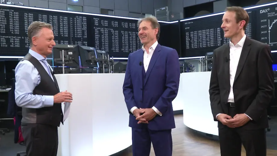 31.05.2025, 15:30 UhrTrotz schwieriger Wirtschaftslage schlägt der Dax nach wie vor seine amerikanischen Konkurrenten. Steht jetzt eine Wende bevor? Sind europäische Aktien inzwischen zu hoch bewertet? Fließt Kapital wieder zurück in die USA? Sind KI-Aktien ausgereizt? Darüber und über mögliche Strategien für Anleger diskutiert Raimund Brichta mit Patrick Kesselhut von der Société Générale und Michael Proffe von Proffe-Invest im ntv-Zertifikate-Talk.