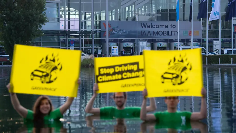 Von PS-Parade zu NachhaltigkeitGreenpeace protestiert im kalten Wasser gegen IAA