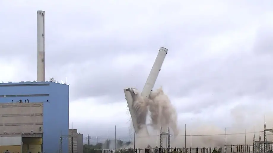 Bauwerke in Ensdorf implodieren110 Kilo Sprengstoff reißen Kraftwerk in Sekunden ab