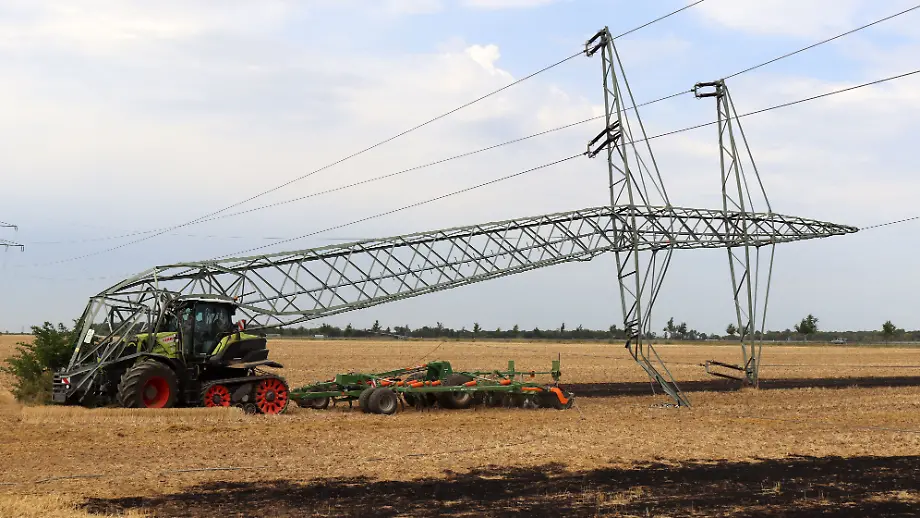 Großflächiger Stromausfall in NRW16-Jähriger fährt Hochspannungsmast mit Traktor um