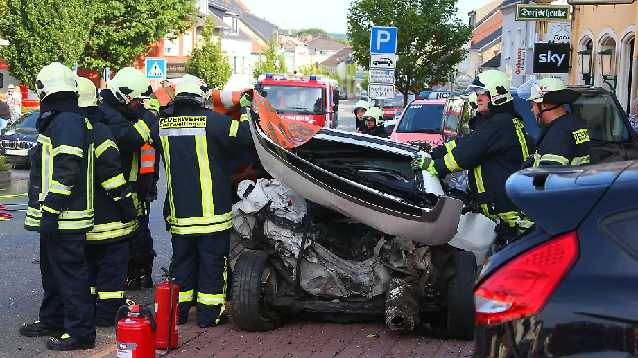 24.08.2017, 08:55 UhrIn Saarwellingen rast ein Fahrzeug mit rund 150 Kilometern pro Stunde durch eine Einkaufsstraße, rammt drei Autos und prallt schließlich auf den Wagen einer 43-Jährigen. Die Frau stirbt, ihre Tochter wird im Wrack eingeklemmt. Die Polizei geht von einem medizinischen Notfall bei dem 26-Jährigen Unglücksfahrer aus.
